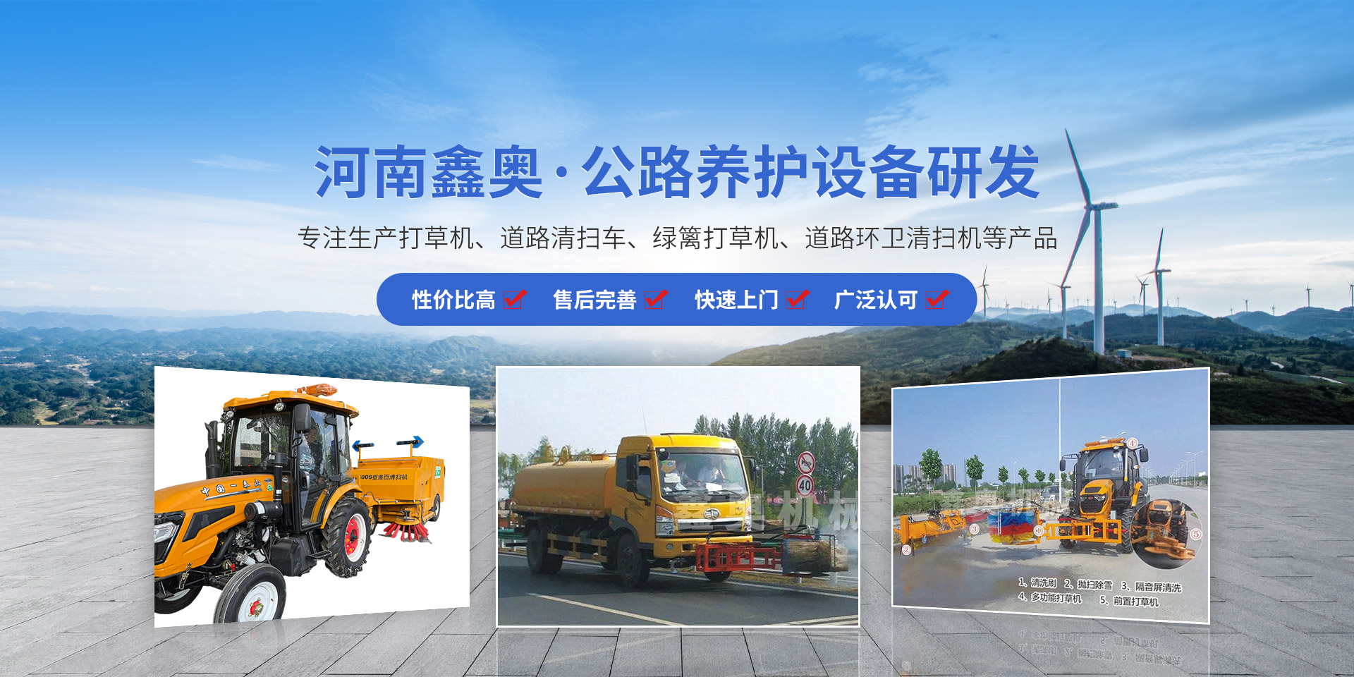 打草機(jī),道路清掃車,綠籬打草機(jī),道路環(huán)衛(wèi)清掃機(jī),護(hù)欄清洗機(jī),河南鑫奧機(jī)械制造有限公司一家生產(chǎn)打草機(jī)、道路清掃車、綠籬打草機(jī)、道路環(huán)衛(wèi)清掃機(jī)等產(chǎn)品的公司